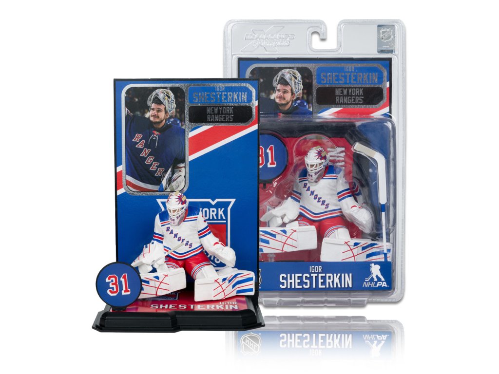 Detailně zpracovaná 7" figurka Igora Šesťorkina z McFarlane SportsPicks Legacy Series zachycuje jednoho z nejlepších brankářů současné NHL. Šesťorkin byl draftován New York Rangers v roce 2014 jako 118. celkově a během šesti sezon si vybudoval bilanci 162–88–22 s průměrem 2,52 a úspěšností .917.