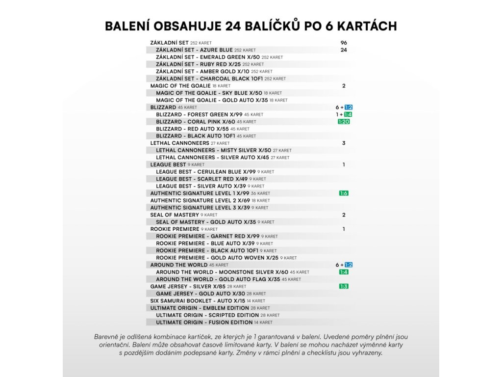 Box obsahuje známé insertní série: Blizzard, Magic of Goalie, Around the World či League Best.