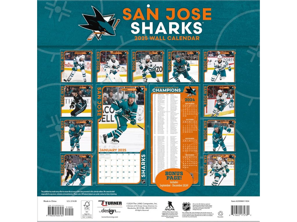 Kalendář San Jose Sharks 2025 Wall CalendarDoplňkové parametry
