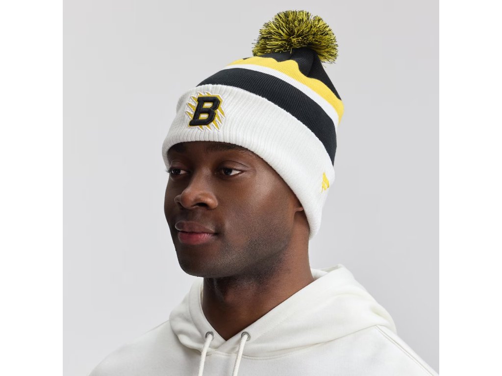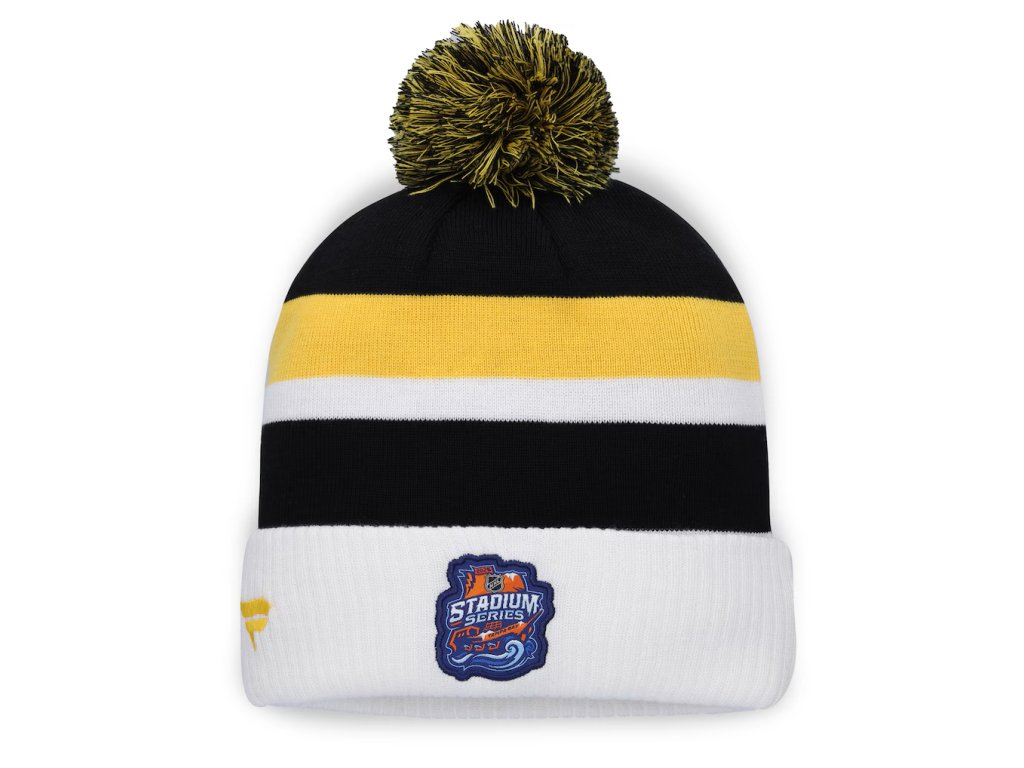 Pánská zimní čepice Boston Bruins 2026 NHL Stadium Series Authentic Pro Cuffed Knit Hat with Pom - Black