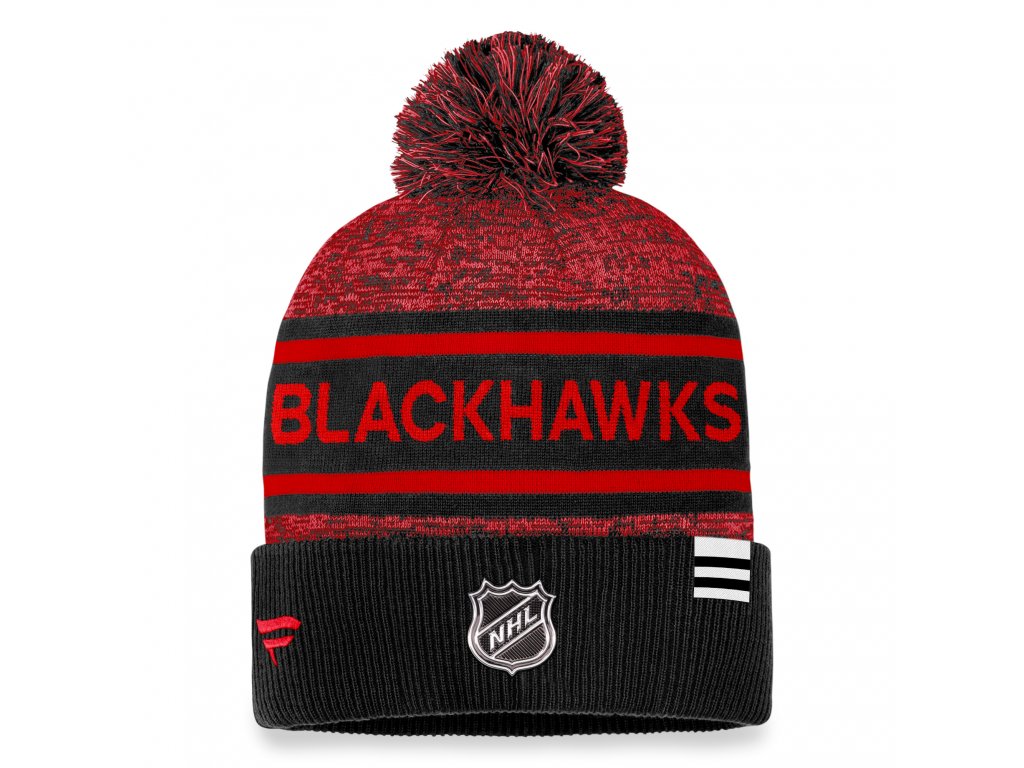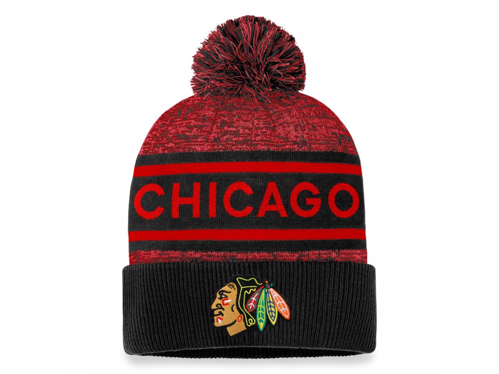 Pánská zimní čepice Chicago Blackhawks Authentic Pro Rink Heathered Cuffed Pom Knit