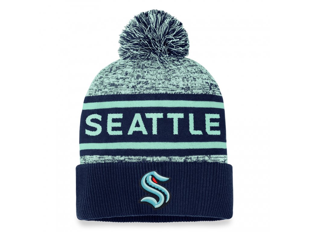 Pánská zimní čepice Seattle Kraken NHL Authentic Pro Rink Heathered Cuffed Pom Knit