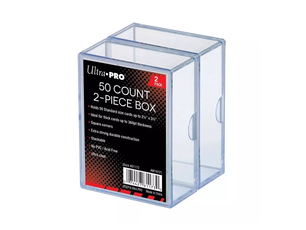Plastová krabička uzavíratelná pro 50 karet (2-dílná), slouží k bezpečnému uchování karet z Vaší sbírky.