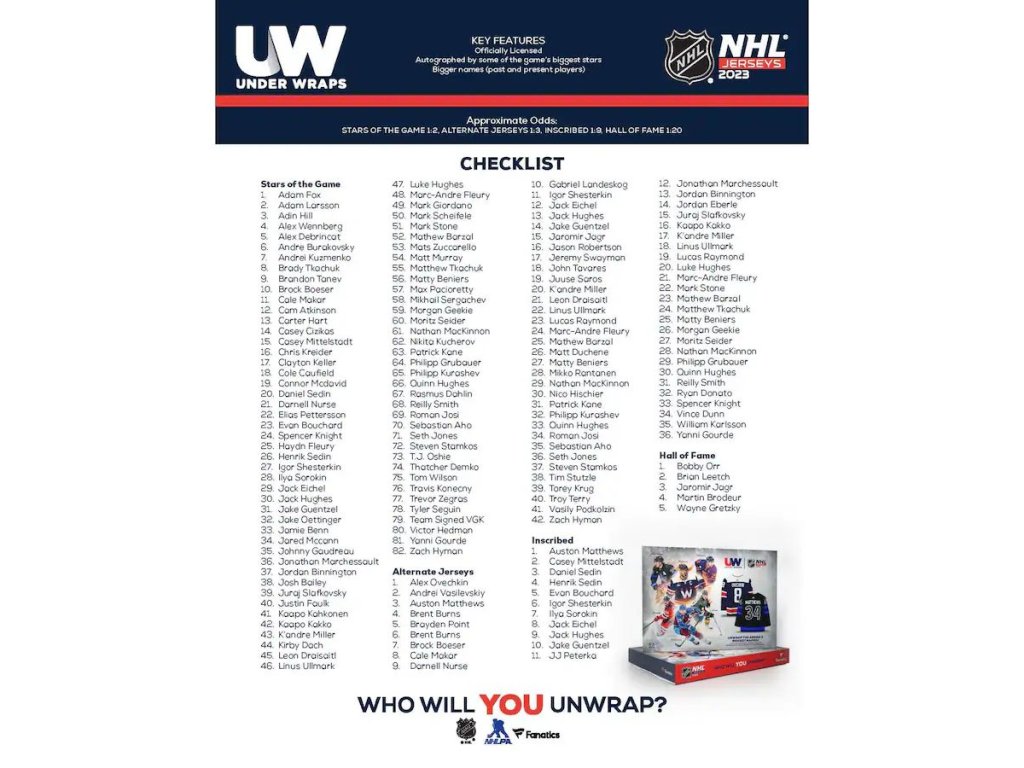 Podepsaný hokejový dres 2023 Under Wraps Single Autographed NHL Jersey Hobby Box