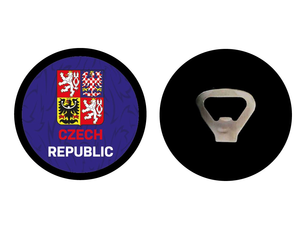 Otvírák ve tvaru puku se symbolem českého státního znaku.