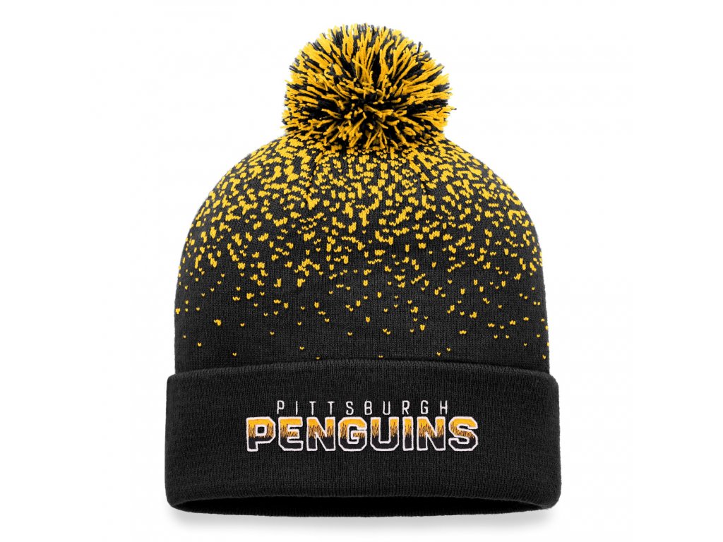 Pánská zimní čepice Pittsburgh Penguins NHL Iconic Gradiant Beanie Cuff with Pom Black-Yellow Gold