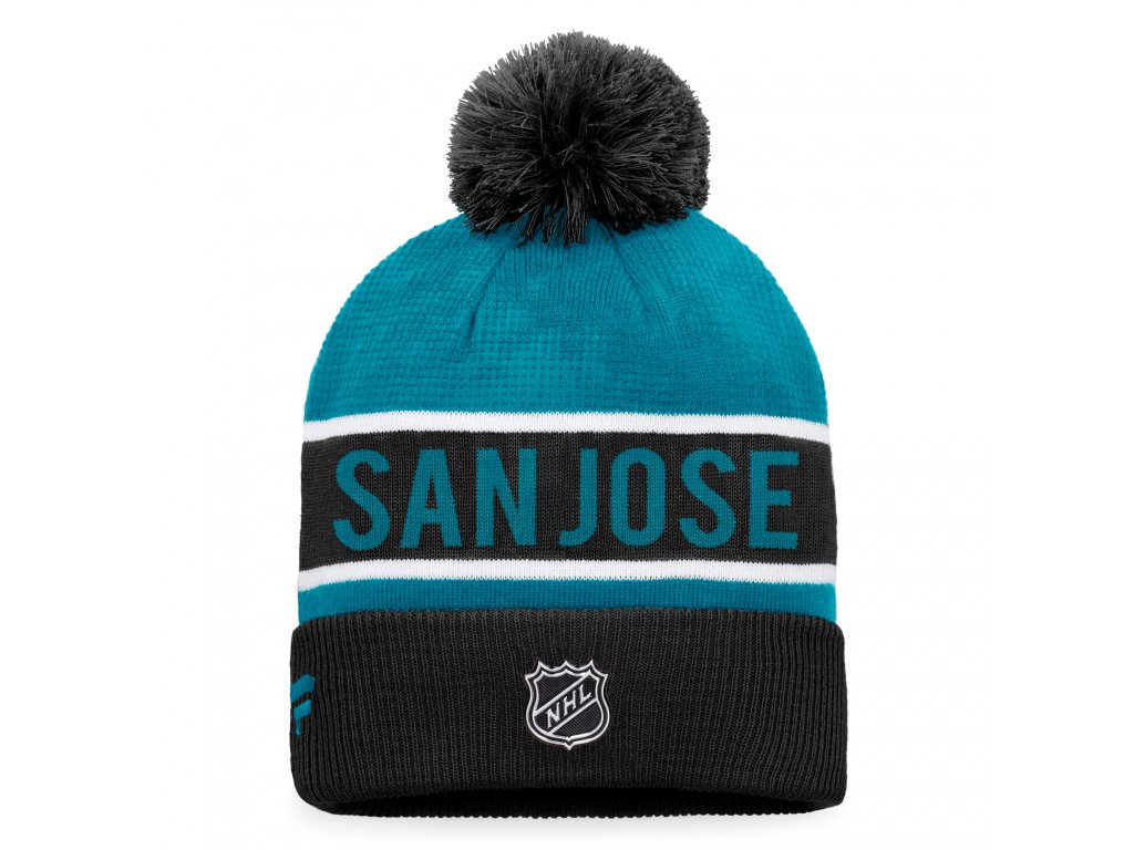 Pánská zimní čepice San Jose Sharks NHL Authentic Pro Game & Train Cuffed Pom Knit Black-Active Blue